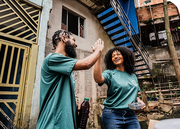 Colaboradores engajados em oficinas, reformas, campanhas solidárias e mentorias sociais.